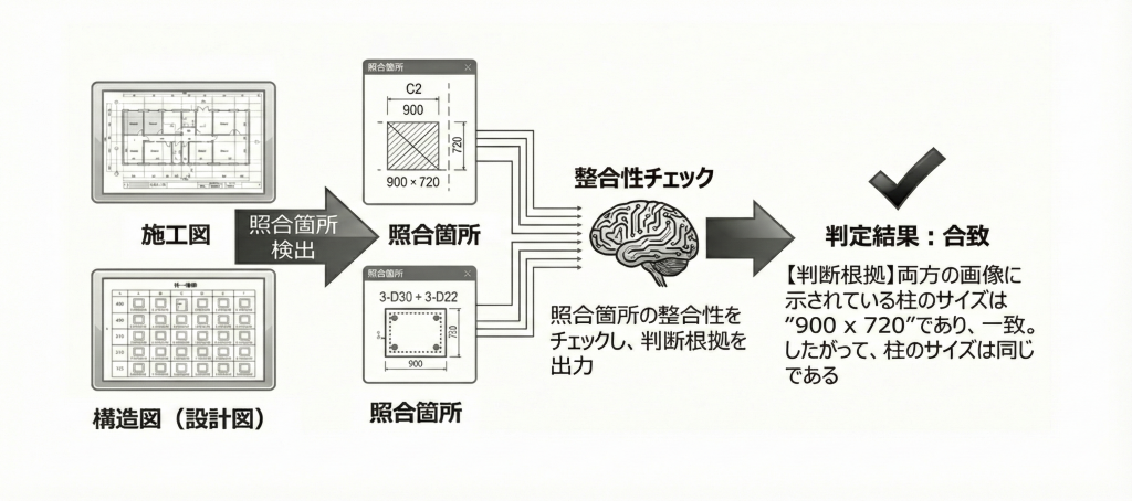 • 対象ユースケース:施工図と構造図の整合性の確認※施工管理職員は、協力会社が構造図(設計図)を元に作成した施工図(実際の工事現場で必要となる、詳細な寸法・部材・設備の仕様などを具体的に示した図面)が、元の構造図と整合しているかをチェックする必要があります。